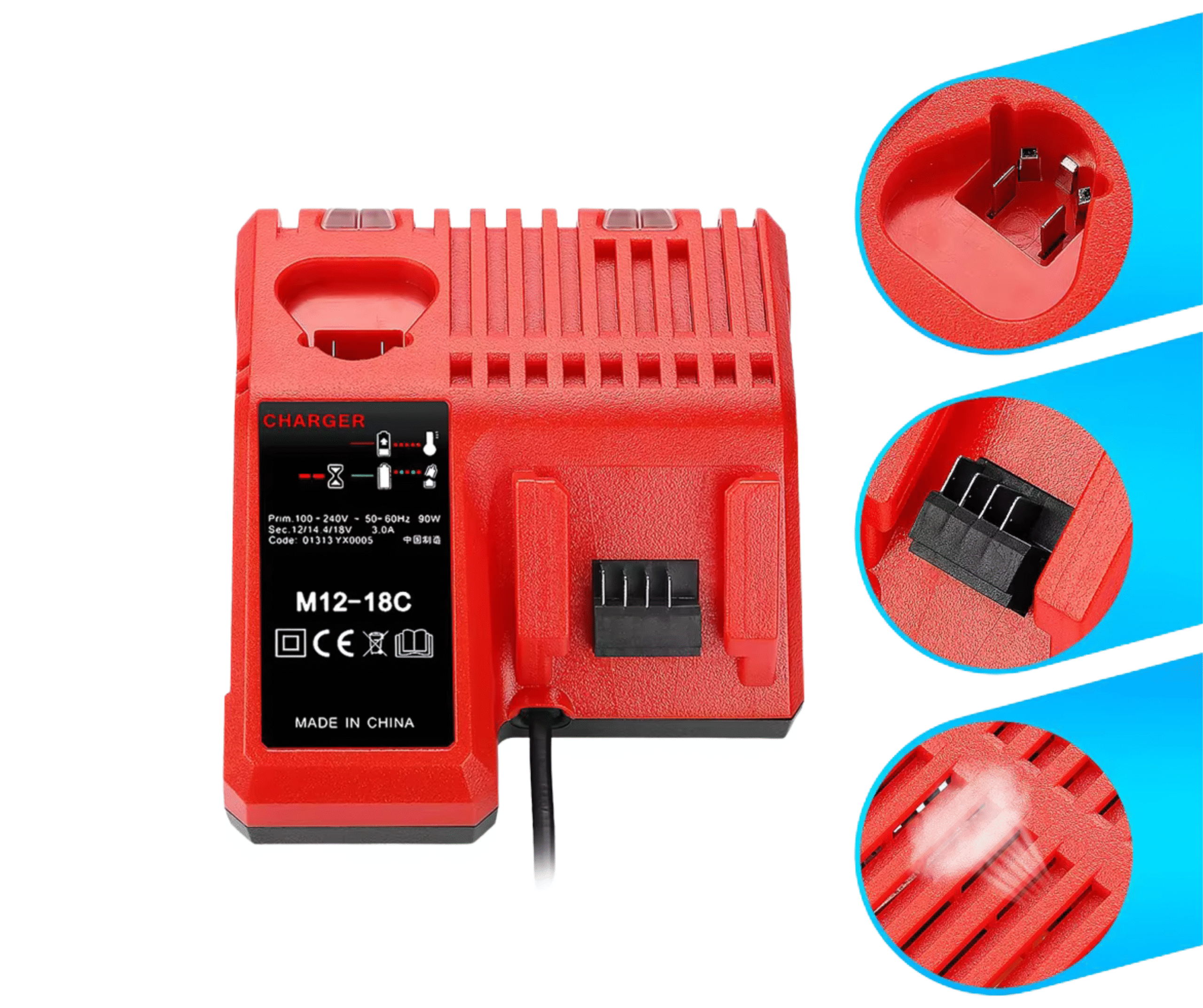 - Sạc tất cả các pin M12™ và M18™ (M12-18C3, M12-18FC, M12-18C)